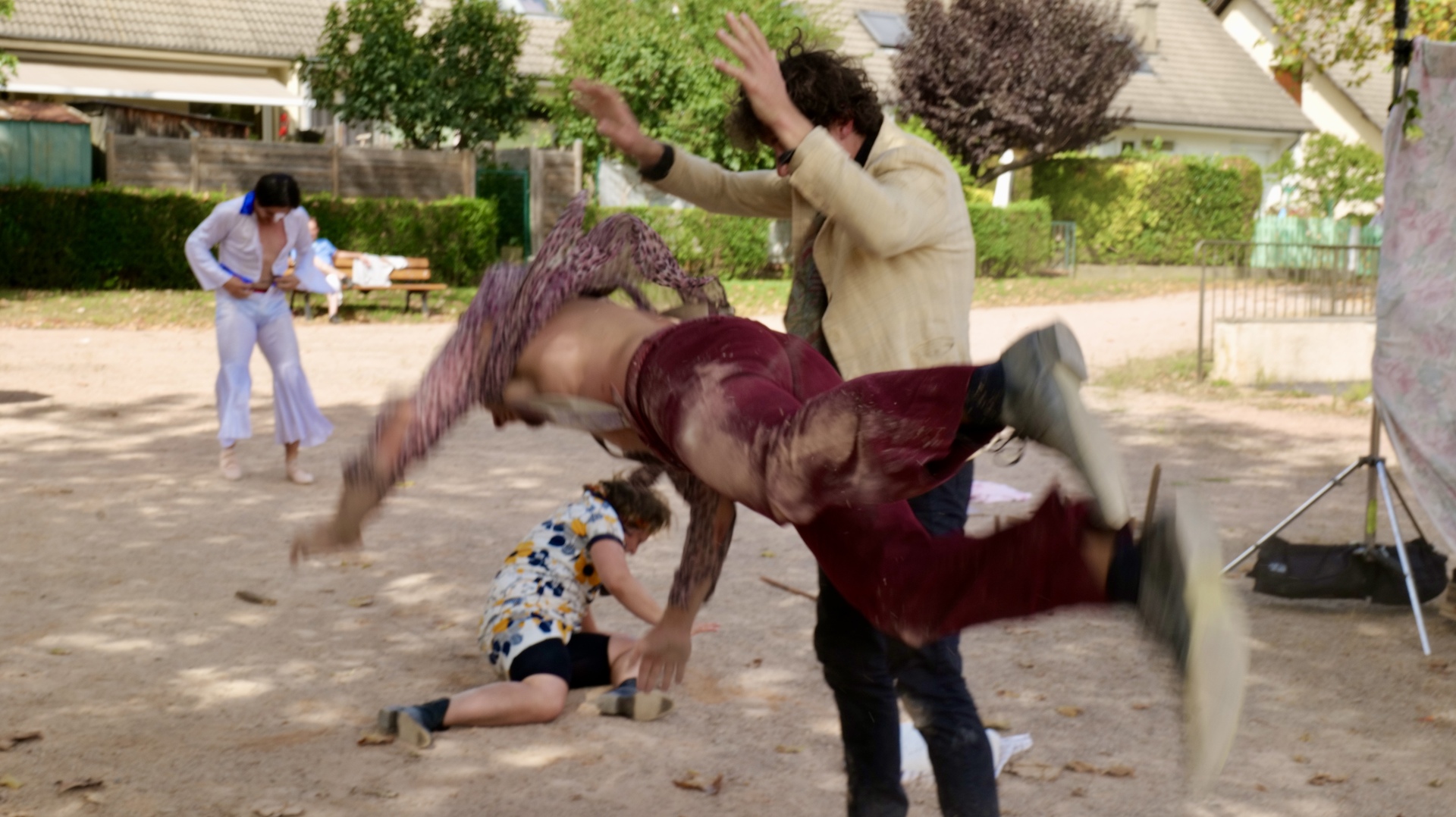 Roméo et Juliette font du Kung-Fu est un spectacle de 30 minutes où se mêlent une ambiance 70's, de la comédie et des cascades explosives. Roméo fait du catch, Juliette détruit une chaise, ils explosent le balcon..! C'est tout autant de cascades folles qui composent ce show endiablé !