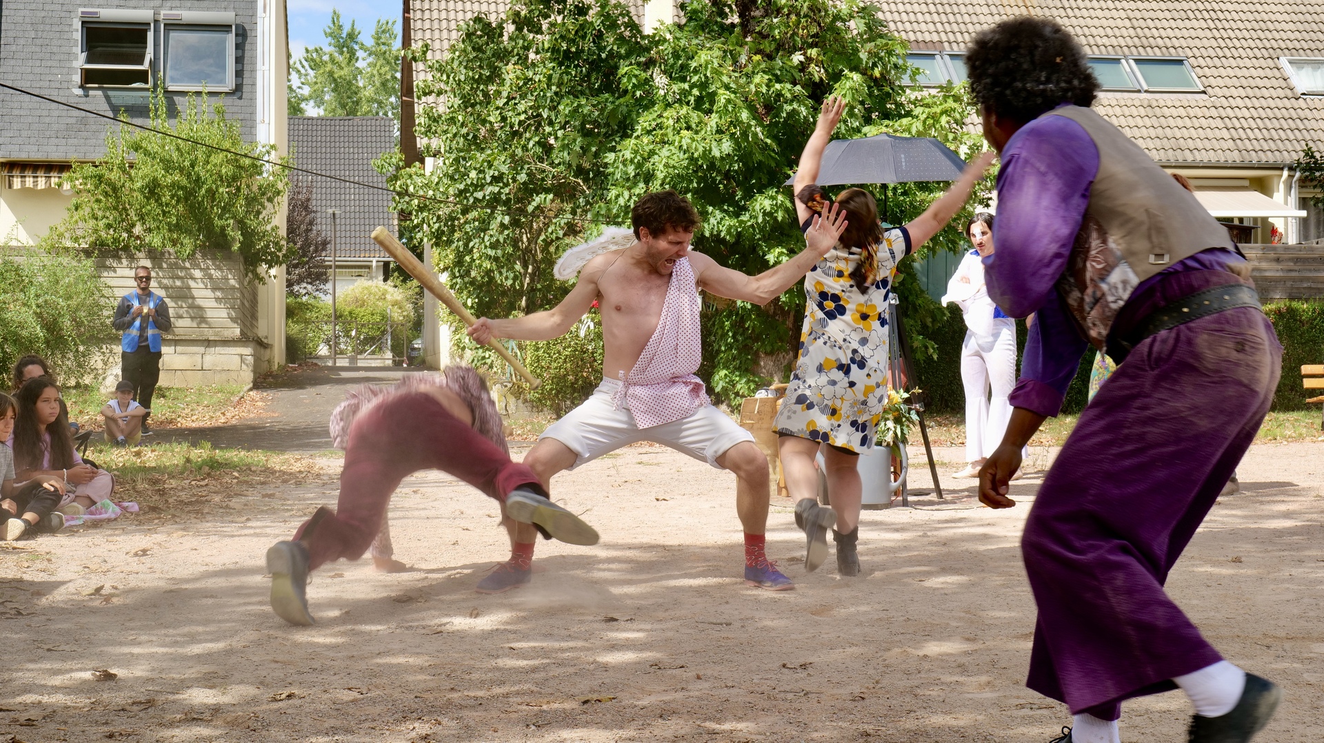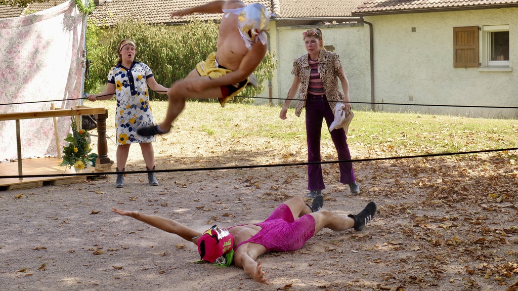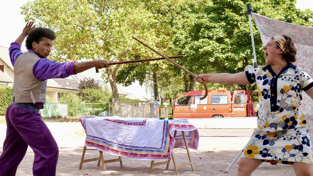 Roméo et Juliette font du Kung-Fu est un spectacle de 30 minutes où se mêlent une ambiance 70's, de la comédie et des cascades explosives. Roméo fait du catch, Juliette détruit une chaise, ils explosent le balcon..! C'est tout autant de cascades folles qui composent ce show endiablé !
